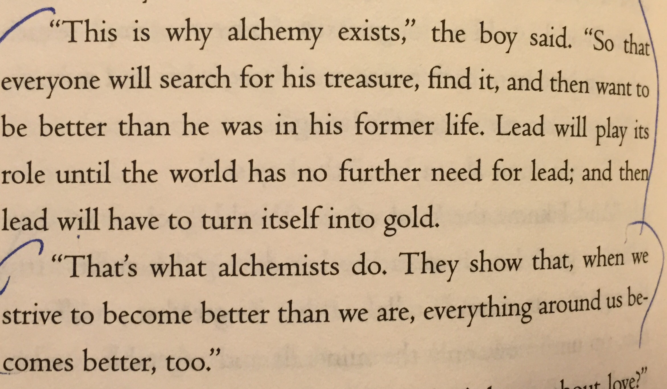 I read The Alchemist again today and was happy to see this thinking echoed.